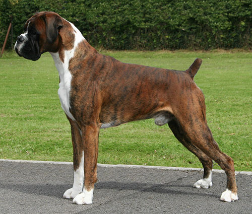 I judged Deano in March 2008 at the Scottish Boxer Club where I awarded him his first CC.