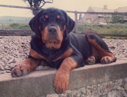 Mum kept Boxers and King Charles Spaniels until the oil crisis of the early seventies caused a change of career for my father, and the dog game had to take a back seat for several years whilst my parents built up their new career in the pub/hotel industry. In 1977, when my parents bought a hotel in the Yorkshire Dales, mum bought her first Rottweiler, this time with full backing from my father who loved the breed.